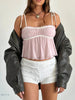 Introducing our stylish Contrast Trim Tie Straps Cami, a versatile addition to your wardrobe that effortlessly blends comfort and elegance. Perfect for layering or wearing solo, this cami is designed to make a statement on its own!