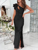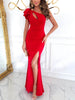 Elevate your wardrobe with our stunning Cutout One Shoulder Ruffle Split Dress. Perfect for any special occasion or a night out, this dress combines elegance and trendiness in one stunning piece.