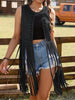 Elevate your wardrobe with our Fringe Cutout Detail Sleeveless Vest Coat, a versatile piece that combines style and comfort effortlessly. Perfect for layering or making a bold fashion statement, this vest coat is designed to enhance any outfit.