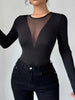 This top is perfect for casual outings, office wear, or even a night out. Pair it with jeans, skirts, or trousers for a chic look. Add the Mesh Detail Round Neck Long Sleeve Top to your collection and enjoy the perfect blend of elegance and comfort.