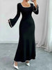 Featuring a square neck design, this maxi dress offers a sophisticated yet modern touch. The contrast trim adds an element of visual interest, making this dress stand out in your wardrobe. The long sleeves provide additional coverage and warmth for cooler weather, ensuring that you can enjoy this style year-round.