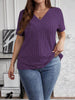 Discover the perfect blend of style and comfort with our Plus Size V-Neck Short Sleeve Ribbed T-Shirt. Designed specifically for curvy women, this top offers a flattering fit and versatile style that can be dressed up or down. Made with high-quality materials, this t-shirt is ideal for everyday wear, whether you're running errands or enjoying a casual day out.