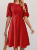 Whether you accessorize it with a statement necklace or keep it simple with minimalistic jewelry, this dress is designed to be styled your way. Embrace your femininity and make a lasting impression with our Round Neck Puff Sleeve A-Line Dress!