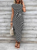 Don’t miss out on the opportunity to elevate your wardrobe with this exquisite Midi Dress. It's not just a piece of clothing; it's an expression of your style and personality. Shop now and embrace the versatility of the Striped Round Neck Cap Sleeve Midi Dress today!