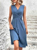 Pair this dress with your favorite sandals or heels for a chic look that stands out. Whether you're attending a wedding, a brunch with friends, or a date night, this Surplice Sleeveless Wrap Dress will be your go-to choice.