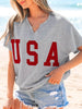 Step out in style with the USA Lettering Patch Notched Neck T-Shirt and showcase your love for fashion and comfort!